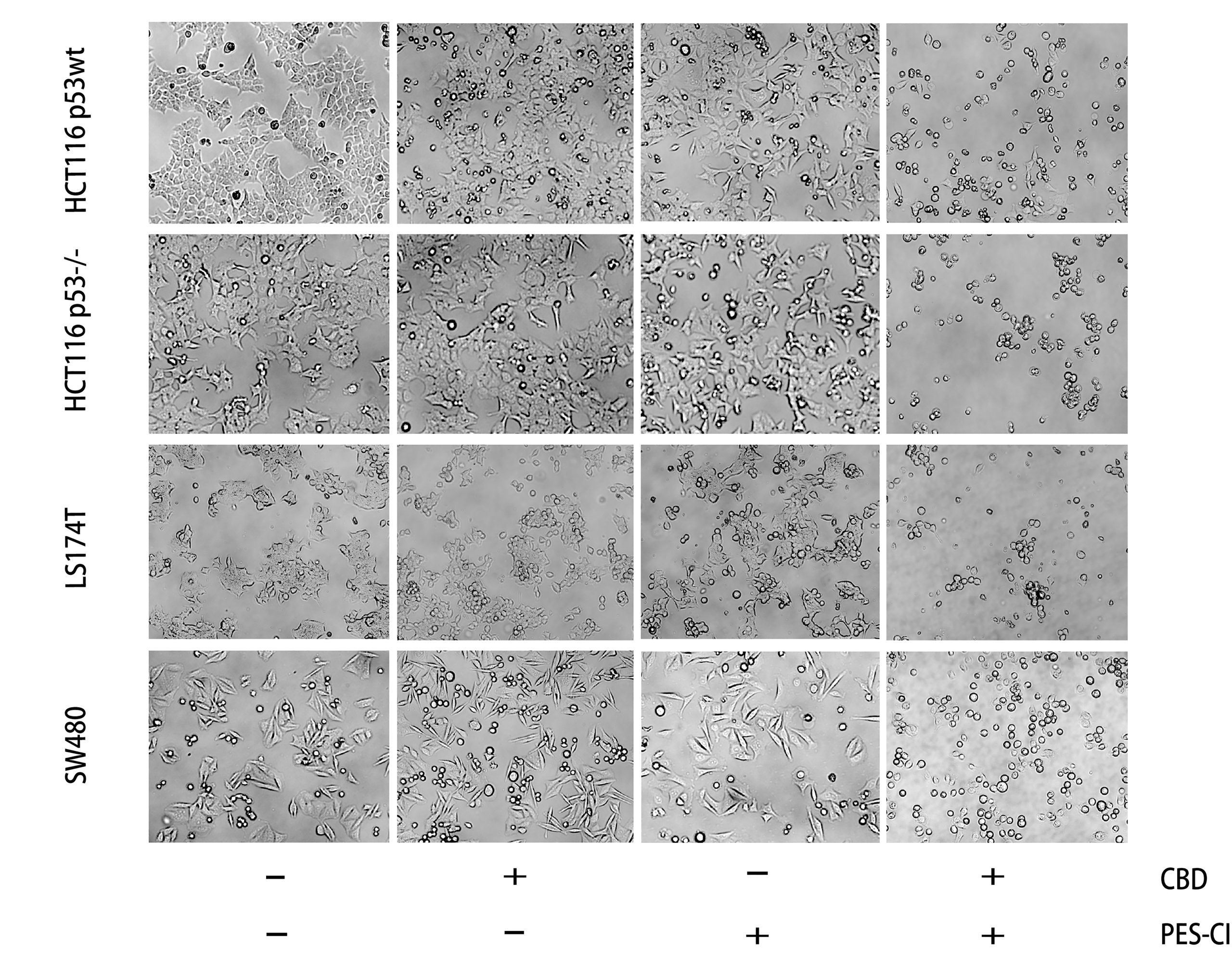 Although multiple antitumoral activities have been described for CBD, the interaction of p53 with CBD and its consequences on tumor cell death remain to be elucidated. In this study, we have shown that the antitumoral activity of CBD is dependent on p53wt in different colon carcinoma cells and that Hsp70 plays a key role in the decision of colon cancer cells to undergo apoptosis or autophagy. A better understanding of the anti-tumorigenic mechanisms and pathways induced by CBD will assist the design of more effective, combined therapeutic strategies for CRC.