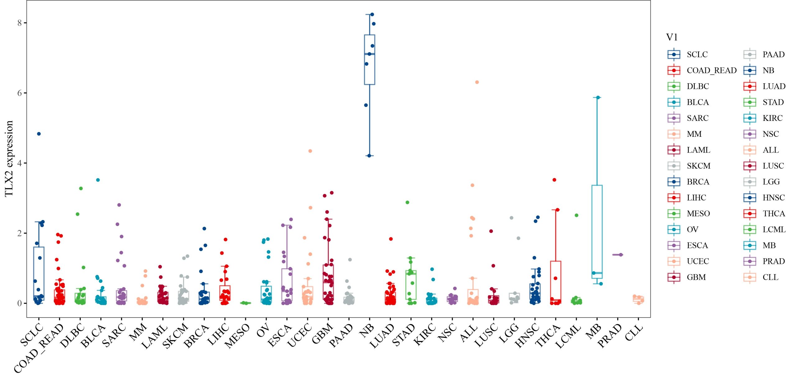 Abnormal expression of TLX2 in pan cancer and cell lines