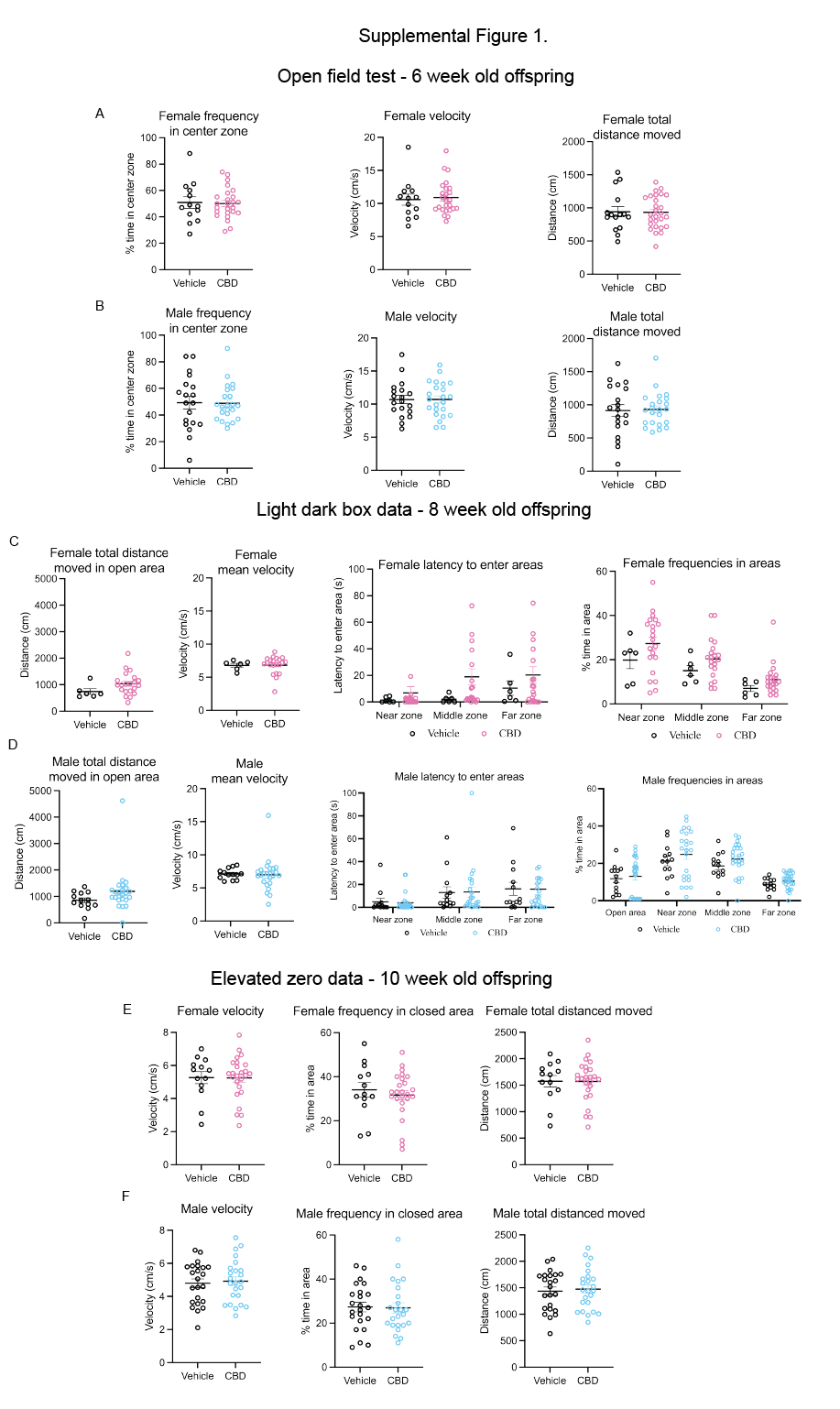 Table 3: Fetal CBD exposure does not impact anxiety-like behaviors in male or female mice.