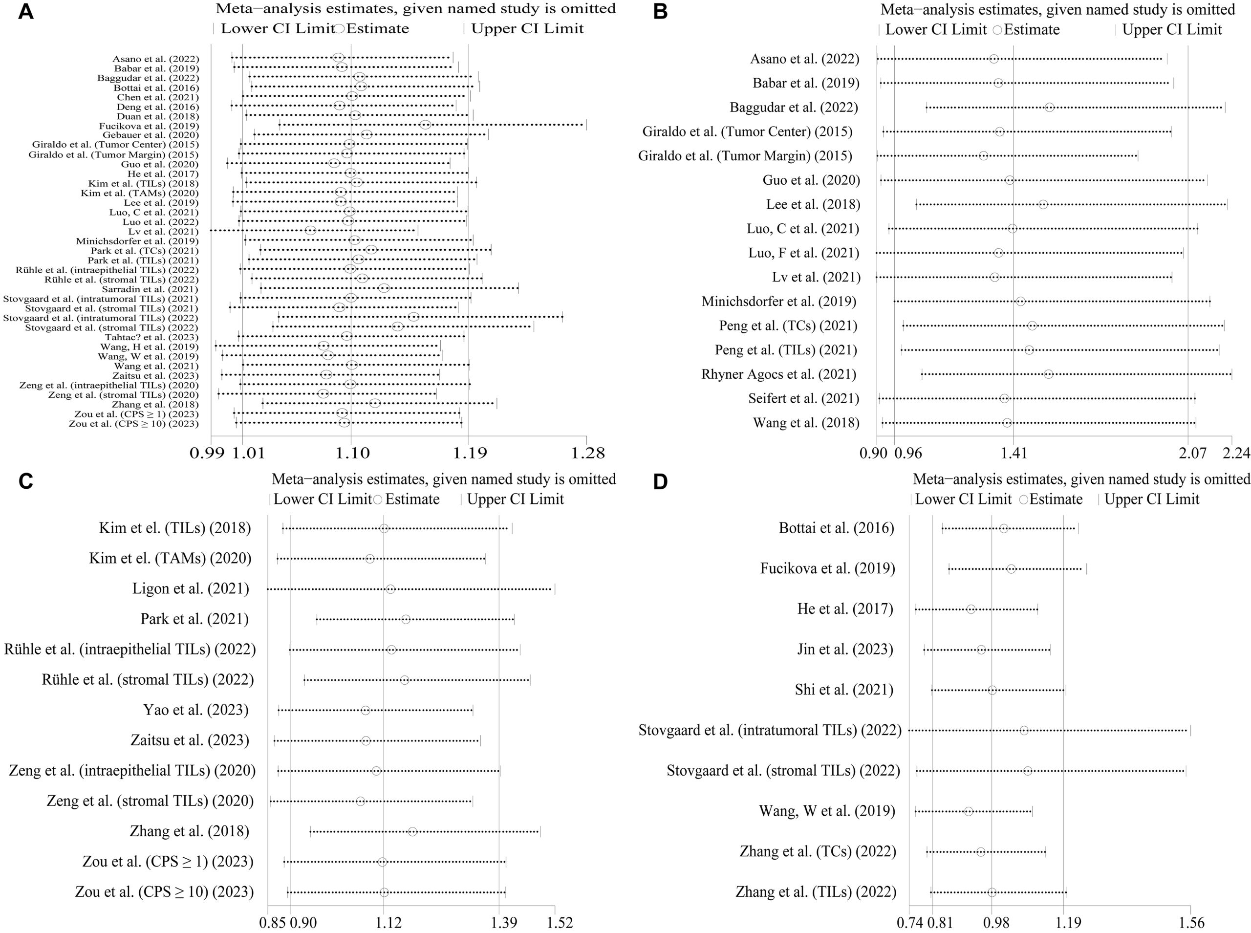 - Additional file 5: Figure S5. Sensitivity analysis of A overall survival, B disease-free survival, C progression-free survival, D recurrence-free survival. (TIF)