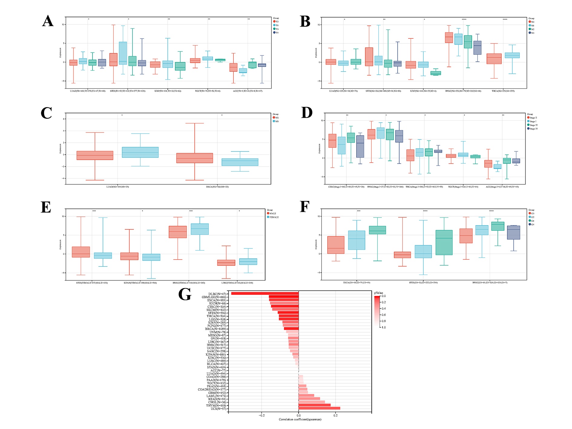 - Supplementary file1: Fig. S1. The correlation of TGM1 expression with Clinicopathological features A The correlation of TGM1 expression with gender; B The correlation of TGM1 expression with grade; C The correlation of TGM1 expression with clinical stages; D The correlation of TGM1 expression with T stages; E the correlation of TGM1 expression with N stage; F The correlation of TGM1 expression with M stages; G The correlation of TGM1 expression with age(TIF 2139 KB) (TIF)