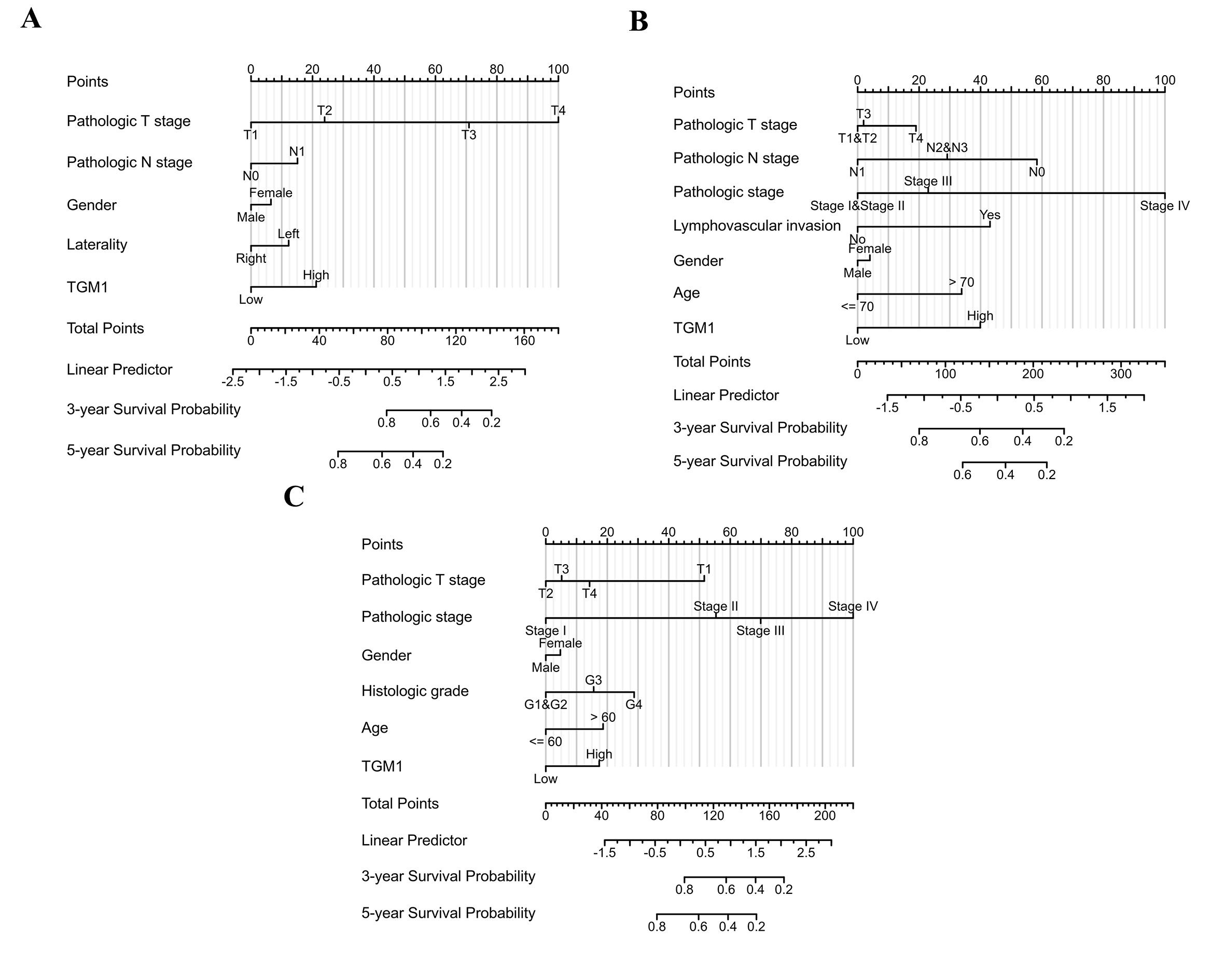 - Supplementary file2: Fig. S2. Nomogram of TGM1 expression and tumor pathological characteristics. A Nomogram of ACC; B Nomogram of BLCA; C Nomogram of KICH. ACC Adrenocortical carcinoma, BLCA Bladder Urothelial Carcinoma, KICH Kidney Chromophobe(TIF 2301 KB) (TIF)
