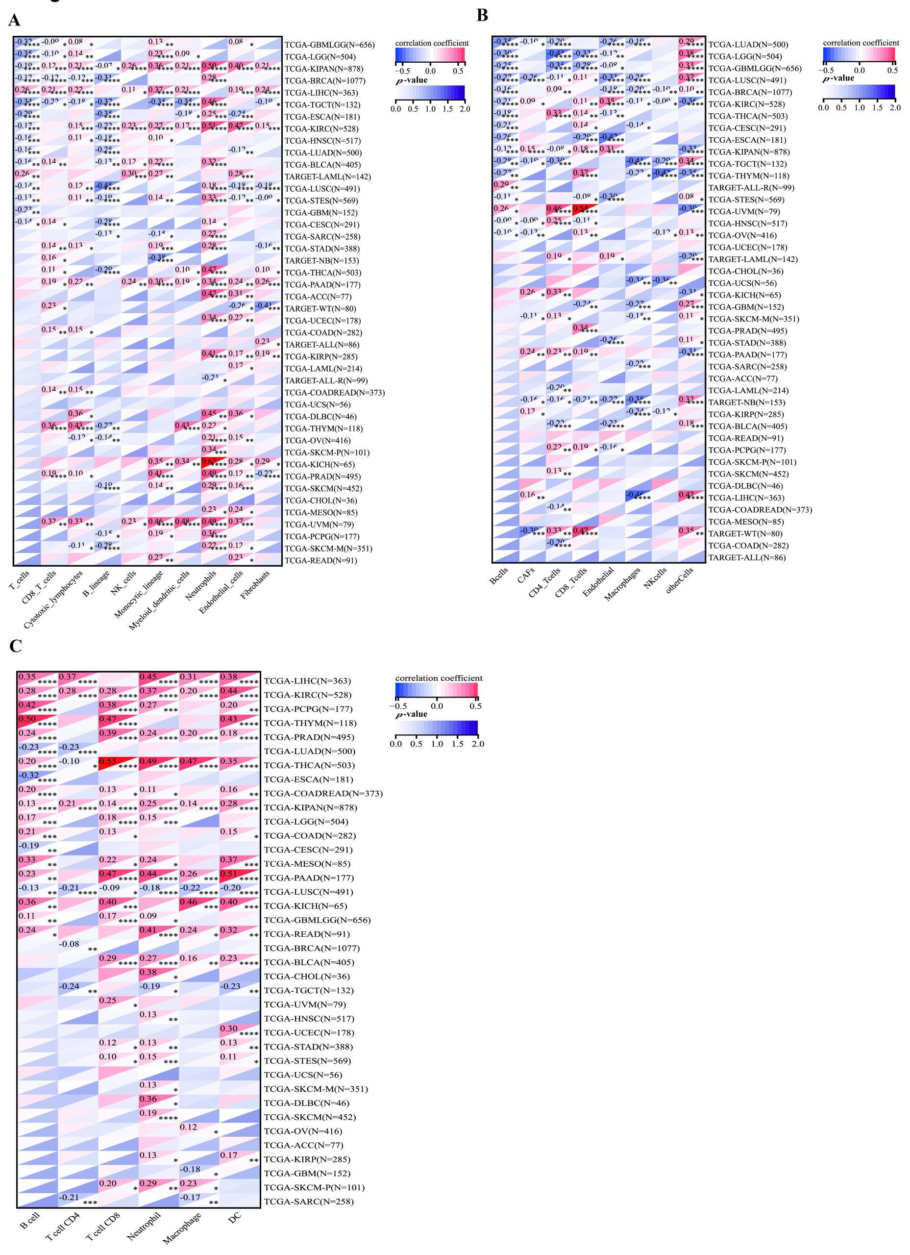 - The correlation of HNRNPC with the level of immune infiltrating cells. (<bold>A-C</bold>): Revealing the correlation between HNRNPC and immune infiltration level in cancer through MCPcounter, EPIC and TIMER analysis. (TIF)
