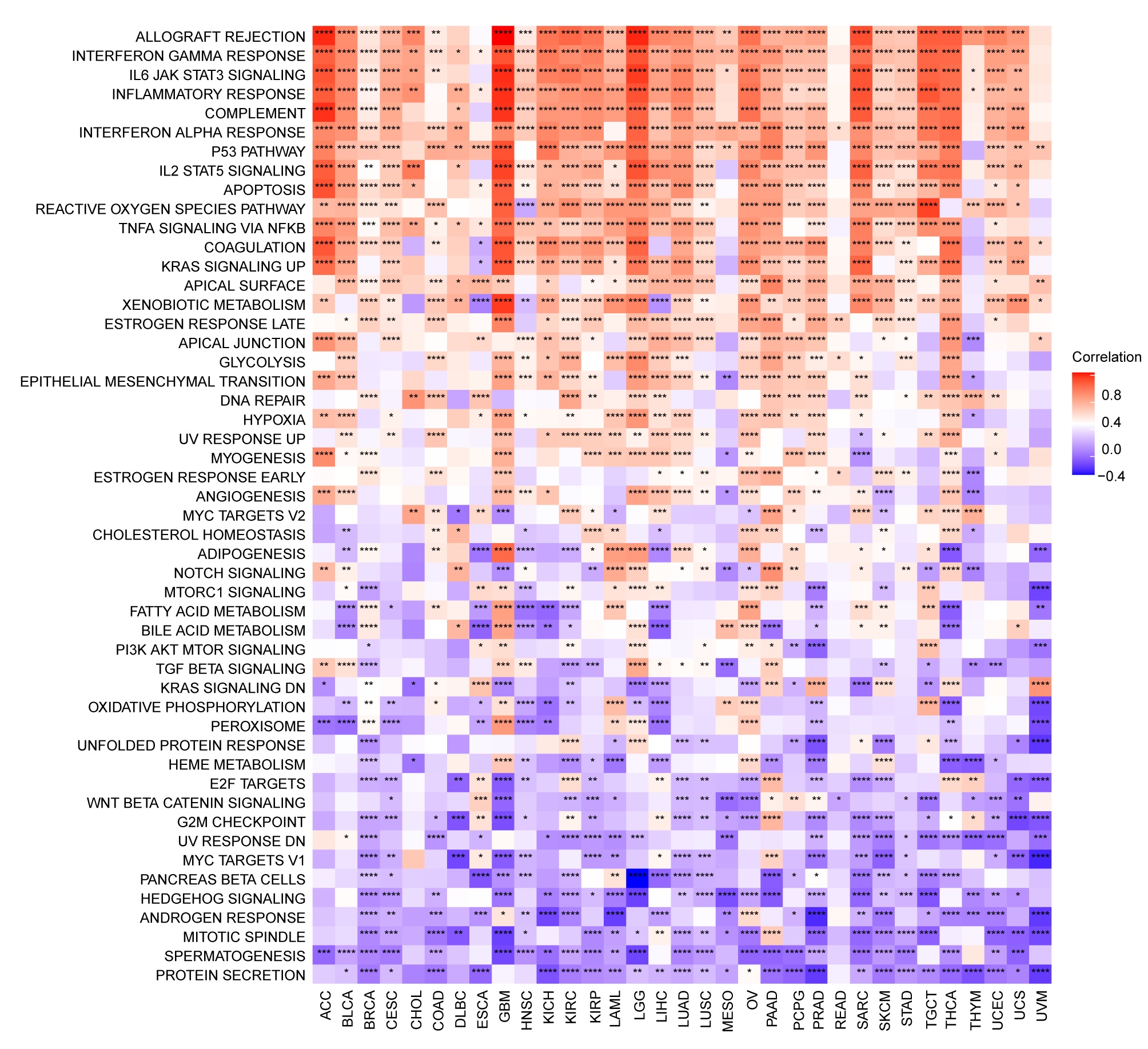 Single nucleotide variation (SNV), copy number variation (CNV), and methylation analyses were conducted using the Gene Set Cancer Analysis ( http://bioinfo.life.hust.edu.cn/GSCA/#/) platform (Liu et al. ref. 2018). The upstream TFs and miRNAs of PANoptosome genes were predicted using the RegNetwork website (https://regnetworkweb.org/) (Liu et al. ref. 2015), and the TFs-miRNAs-PANoptosome genes network was constructed using the Cytoscape software (Shannon et al. ref. 2003), which was downloaded from https://cytoscape.org/. The differentially expressed genes (DEGs) between tumor and non-tumor tissues was performed via the “limma” R package (Ritchie et al. ref. 2015). The PANo-RPI was calculated using the ssGSEA method with the “gsva” R package (Hanzelmann et al. ref. 2013). Pathway activity based on the “hallmark gene sets” from the molecular signatures database (MsigDB, https://www.gsea-msigdb.org/gsea/msigdb) (Liberzon et al. ref. 2015) was assessed using the GSVA method with the “gsva” R package (Hanzelmann et al. ref. 2013). Certain biological process signatures, including antigen processing machinery, immune checkpoints, epithelial-mesenchymal transition (EMT), etc., were evaluated according to the protocol described by Mariathasan et al. (ref. 2018). The immune cell infiltrations were analyzed using the ESTIMATE algorithm (Yoshihara et al. ref. 2013) and ImmuCellAI database (http://bioinfo.life.hust.edu.cn/web/ImmuCellAI/) (Miao et al. ref. 2020). The correlation between PANoptosome genes and the sensitivity of small-molecule drugs from the genomics of drug sensitivity in cancer (GDSC, https://www.cancerrxgene.org/) (Miao et al. ref. 2020) and cancer therapeutics response portal (CTRP, https://portals.broadinstitute.org/ctrp/) (Basu et al. ref. 2013; Seashore-Ludlow et al. ref. 2015; Rees et al. ref. 2016) were evaluated using GSCA (Liu et al. ref. 2018). The 3D coordinates of proteins were downloaded from the PDB (http://www.rcsb.org/pdb/home/home.do) (ww ref. 2019), the structures of small-molecule drugs were retrieved from PubChem Compound (https://pubchem.ncbi.nlm.nih.gov/) (Wang et al. ref. 2017), and the binding affinities and modes was analyzed through Autodock Vina 1.2.2, which is an in silico protein–ligand docking software.