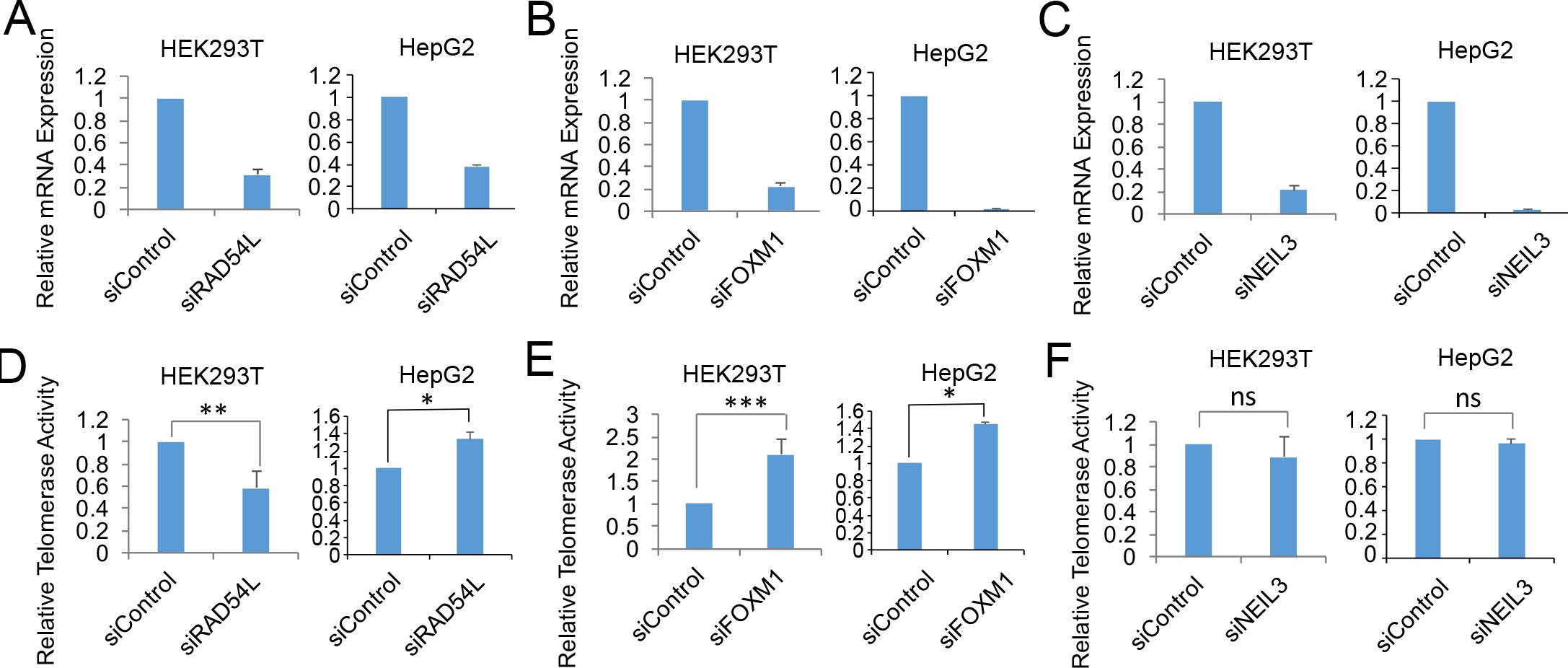 - Figure S8. Telomerase activity changes of RAD54L, FOXM1 or NEIL3 knockdown. (TIF 917 kb) (TIF)