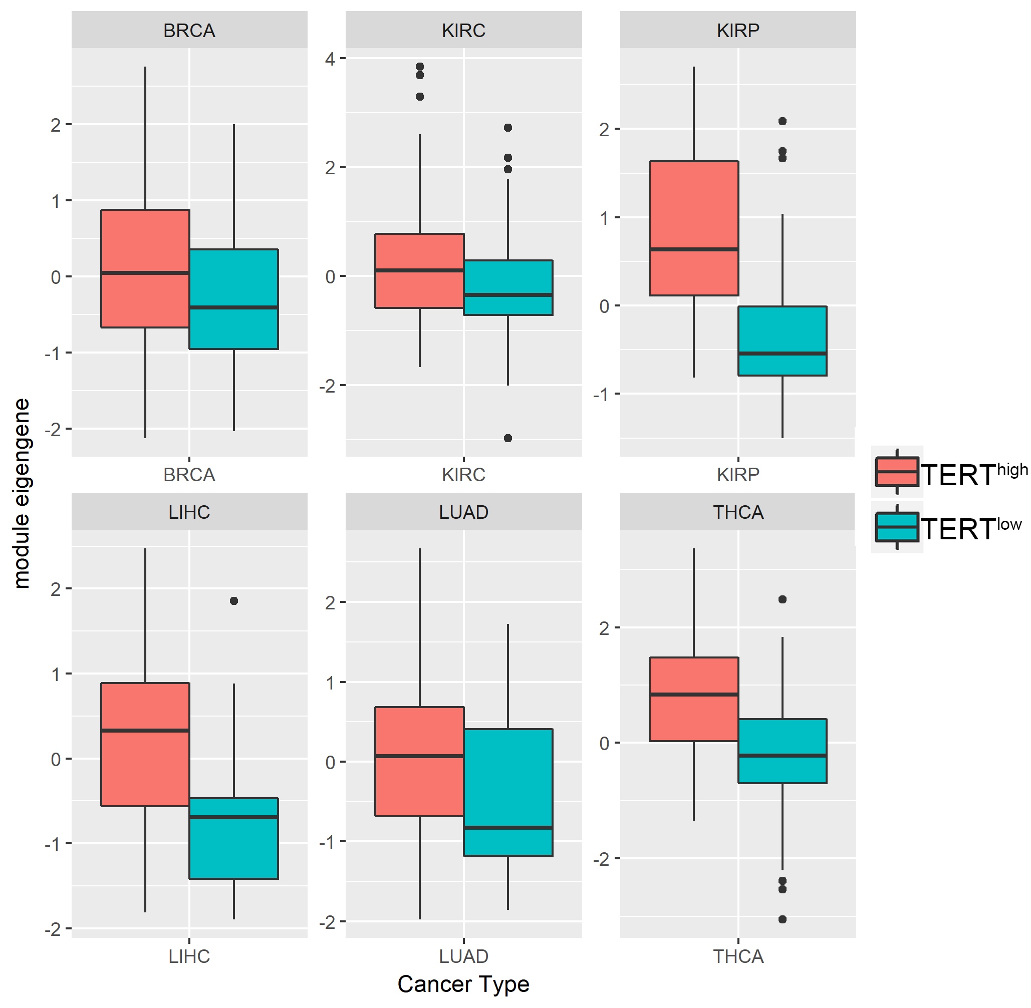 - Figure S6. Genes in cell cycle/mitotic nuclear division module identified by WGCNA are highly expressed in TERThigh samples across 6 cancers. (TIF 1270 kb) (TIF)