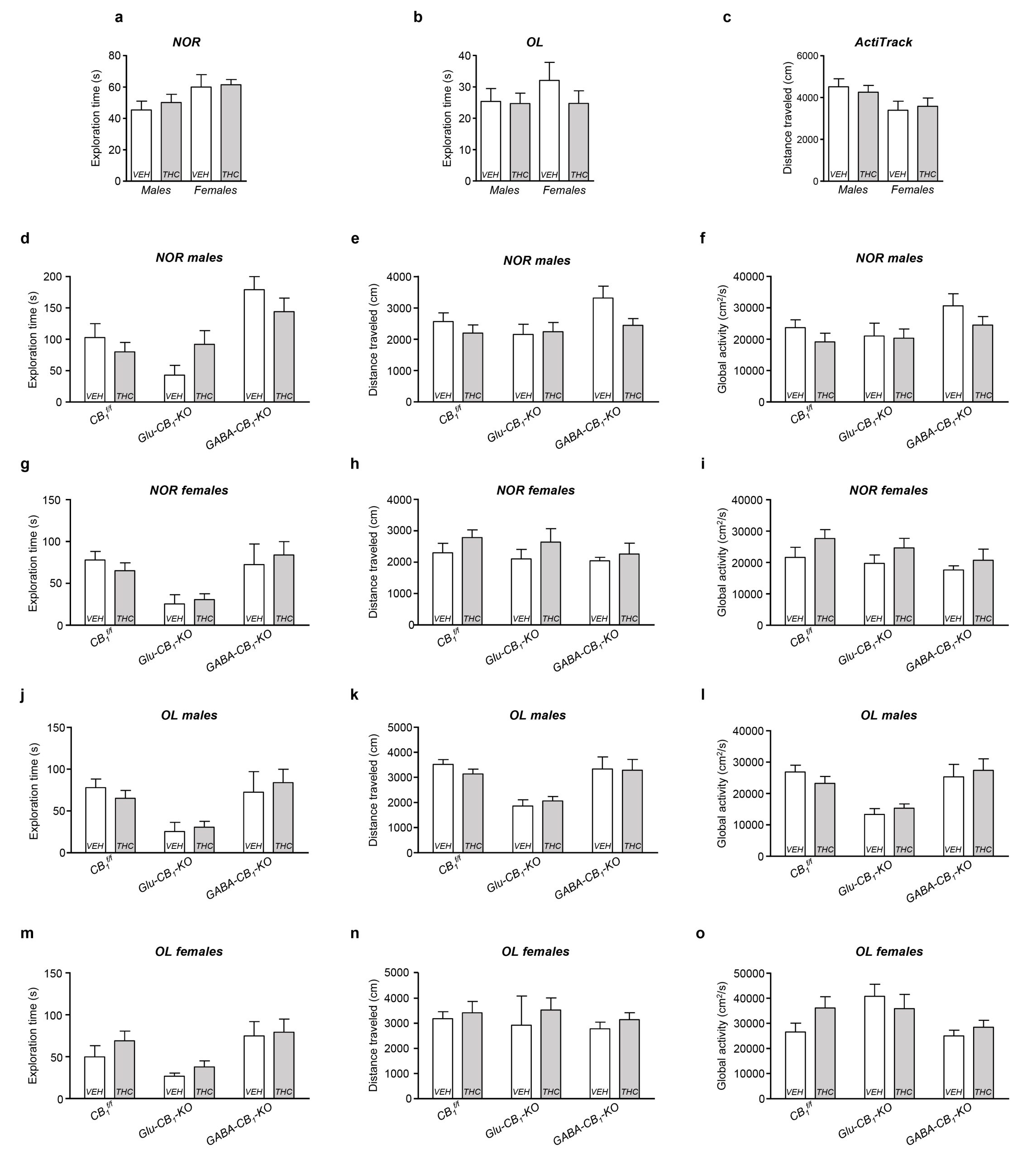 Detailed methods for immunofluorescence and confocal microscopy, in situ hybridization (ISH), immunohistochemistry (IHC), stereological analysis, pentylenetetrazol (PTZ)-induced seizures assay, novel object recognition (NOR) and object location (OL) tasks, cannabinoid-induced analgesia and hypothermia, THC measurements, and WIN-55,212-2-stimulated [35S]GTPγS-binding assays are provided as Supplementary Materials and Methods.