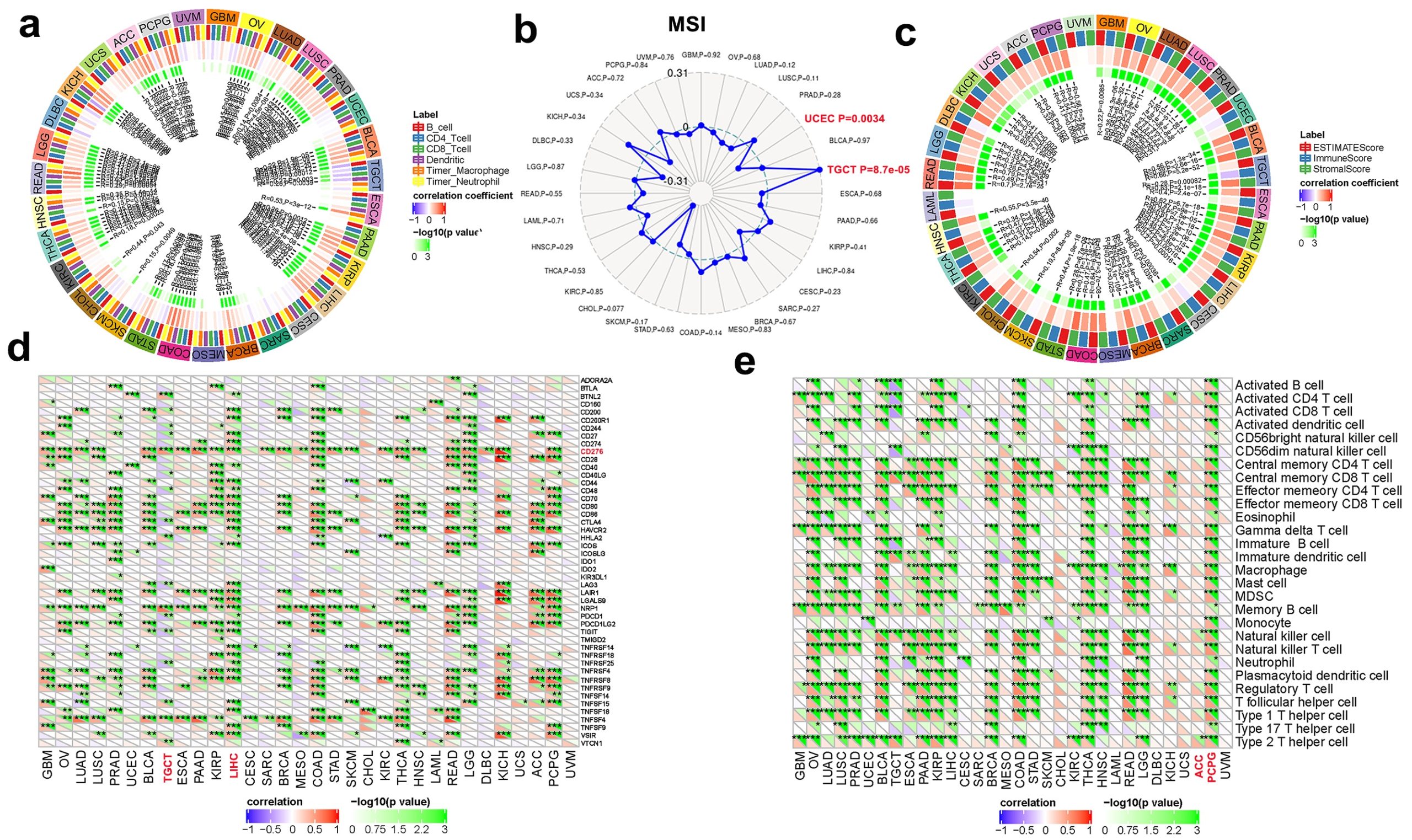- Additional file 10: Figure S10. Gene-immune analysis of CTHCR1. The relationship between CTHRC1 expression and infiltrating levels of B cells, CD4 + T cells, CB8 + T cells, macrophages, neutrophils, dendritic cell (a), MSI (b), ESTIMATE score (c), ICP genes (d); and Immune cells (e) in human cancers. * P < 0.05; ** P < 0.01; *** P < 0.001. (TIF)