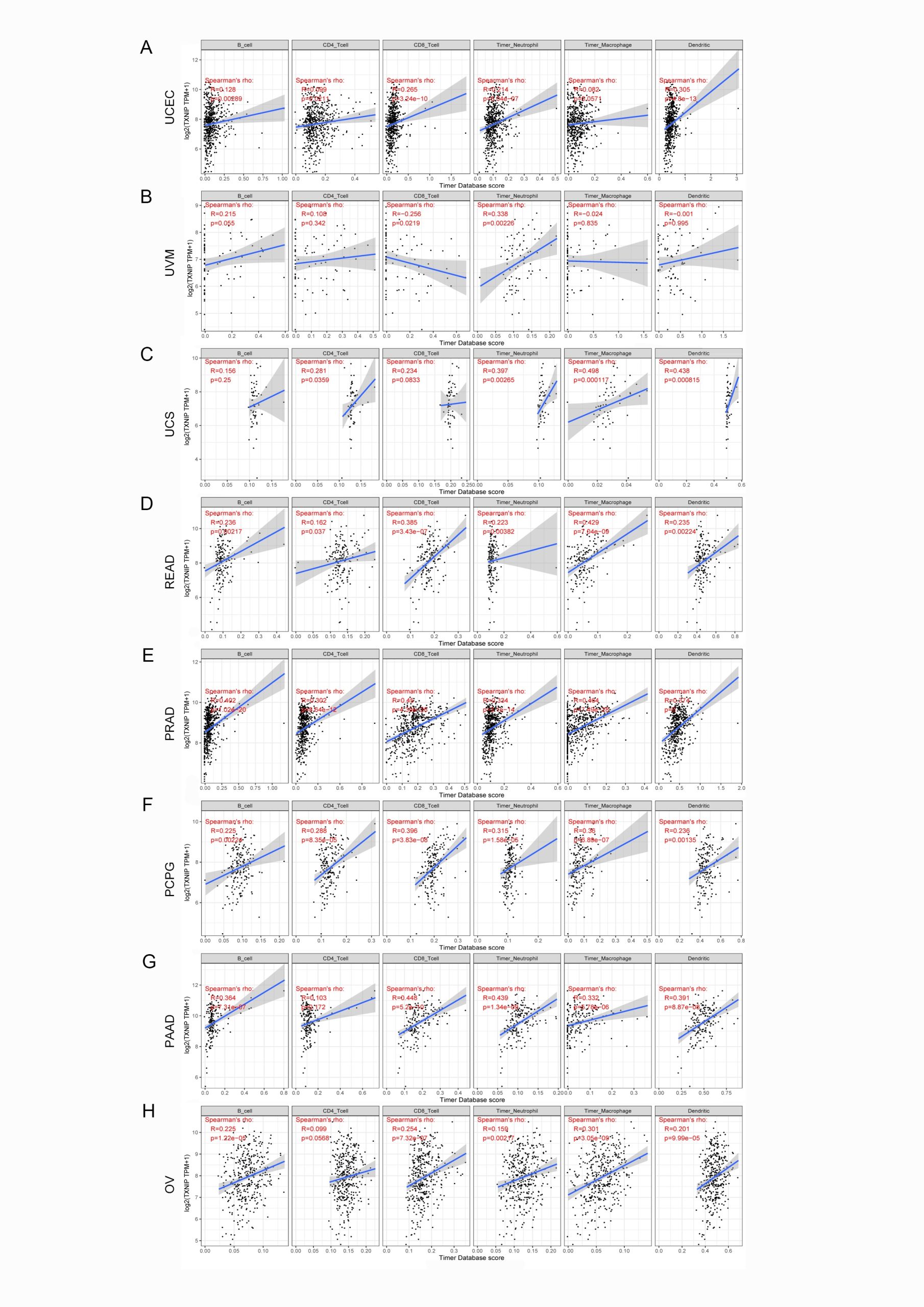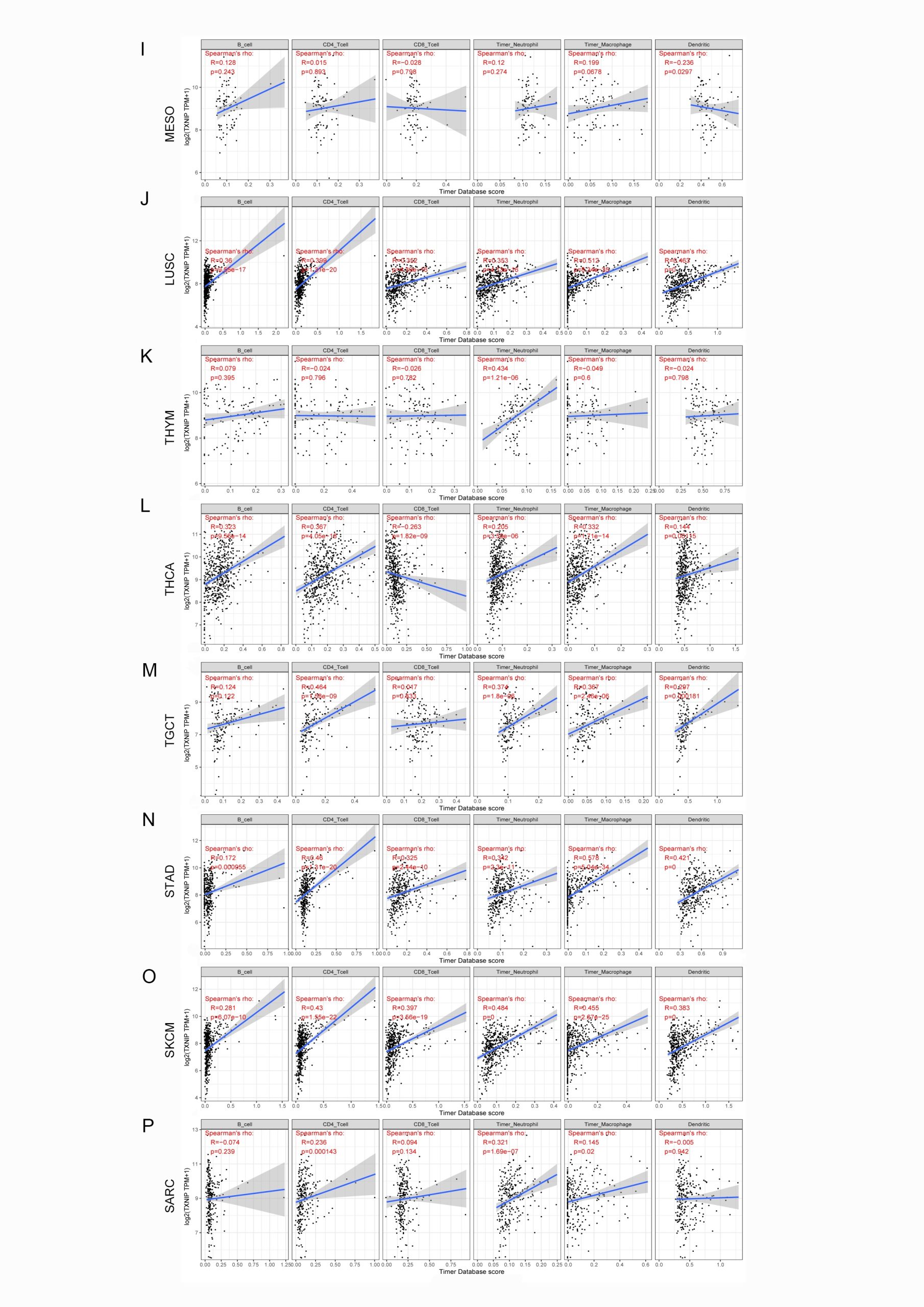 - Additional file 4. Correlation of TXNIP expression with tumor-infiltrating immune cells in MESO, LUSC, THYM, THCA, TGCT, SATD, SKCM and SARC via the TIMER2 database. (TIF)