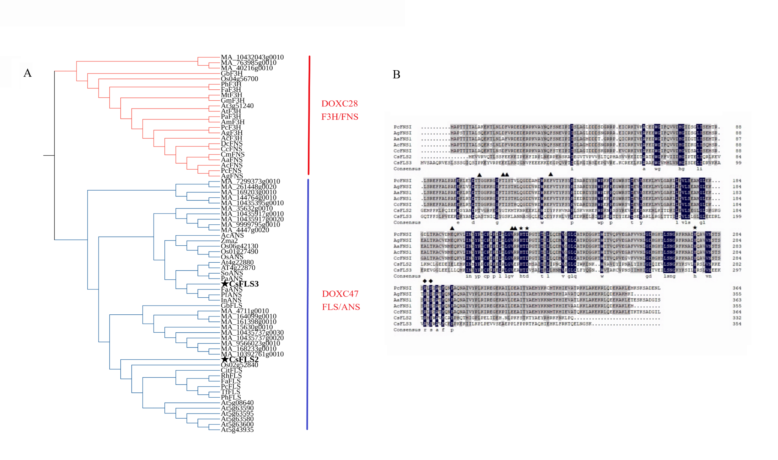 - Additional file 7: Figure S3. Comparsion of CsFLS2 and CsFLS3 with other proteins belonging to DOXC 28/47 subgroup of 2-ODD superfamily. (PNG)
