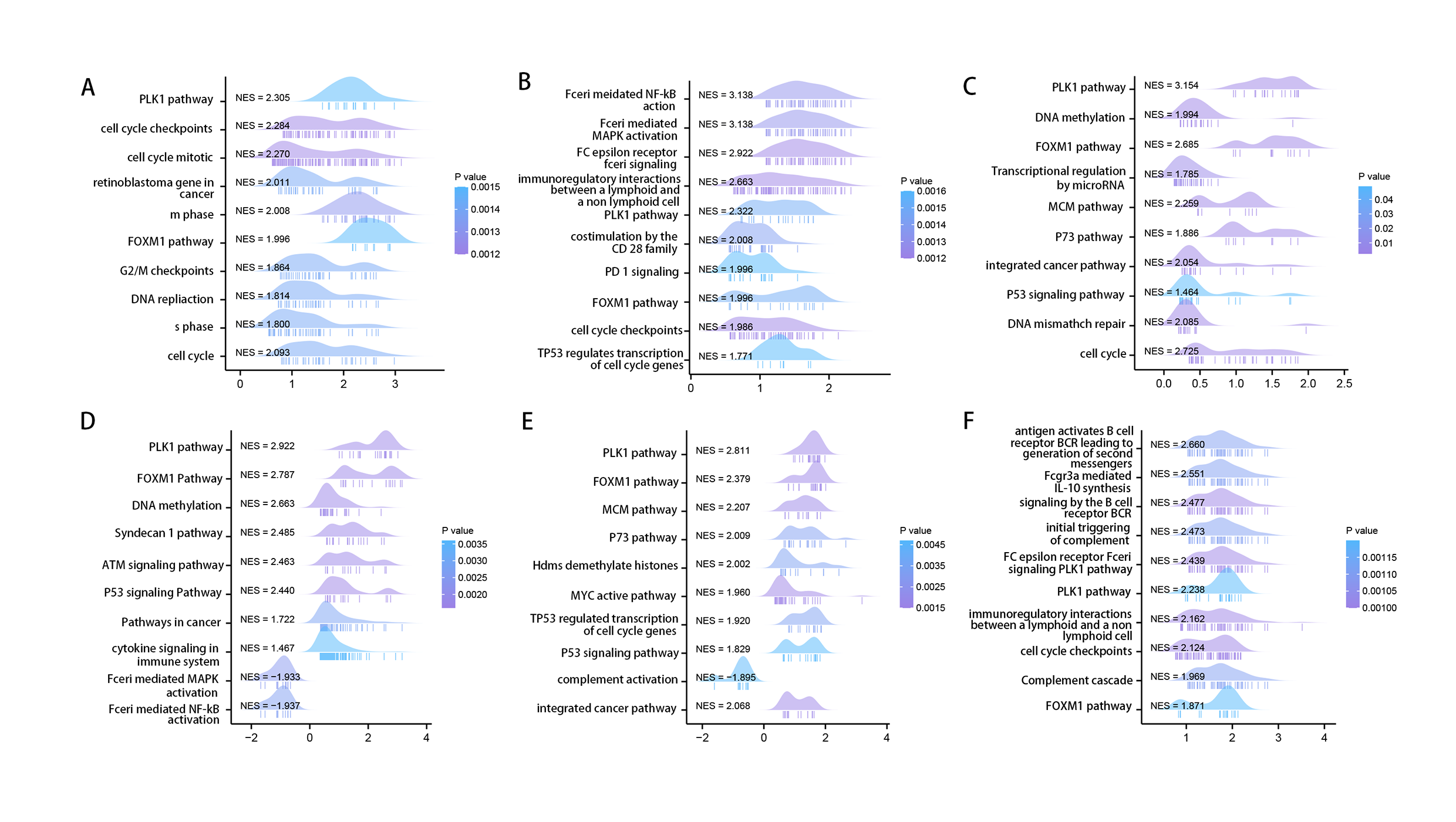 Using the STRING tool, we obtained experimentally detected RRM2-binding proteins, and the PPI network of proteins was shown in Fig. 6A. The GEPIA2 tool was then used to identify the top 100 genes that correlate with RRM2 expression in combining TCGA pan-cancer expression. As illustrated in Fig. 6B, RRM2 expression was positively associated with that of BUB1 (BUB1 Mitotic Checkpoint Serine/Threonine Kinase, R = 0.72), CCNA2 (Cyclin A2, R = 0.76), CENPI (Centromere Protein I, R = 0.72), CKAP2L (Cytoskeleton Associated Protein 2 Like, R = 0.74), PLK1 (Polo Like Kinase 1, R = 0.74), KIF4A (Kinesin Family Member 4A, R = 0.72), KIF1 (Kinesin Family Member 1, R = 0.75), MKI67 (Marker of Proliferation Ki-67, R = 0.75), NCAPH (Non-SMC Condensin I Complex Subunit H, R = 0.72) genes (all P < 0.001). The majority of tumors exhibited a positive relationship between RRM2 and the nine genes listed above, as indicated by the results of a heat map (Fig. 6C). As shown in Fig. 6D, GO analysis determined that RRM2 was primarily involved in cell cycle checkpoint, ATPase activity, and condensed chromosome. Several pathways, including “Hepatitis B”, “p53 signaling pathway”, and “cell cycle” were identified as the KEGG pathways most significantly enriched, suggesting that RRM2 played a crucial part in the development and progression of cancers, particularly HBV-related LIHC (Fig. 6E). Meanwhile, GSEA was used to identify functional RRM2 enrichment (Fig. S4). High expression of RRM2 is implicated in numerous carcinogenic and immune-related processes, including PLK1 pathways, Forkhead box M1 (FOXM1) pathways, P53 signaling pathways, immunoregulatory interactions between a lymphoid and a nonlymphoid cell, and DNA repair and methylation.