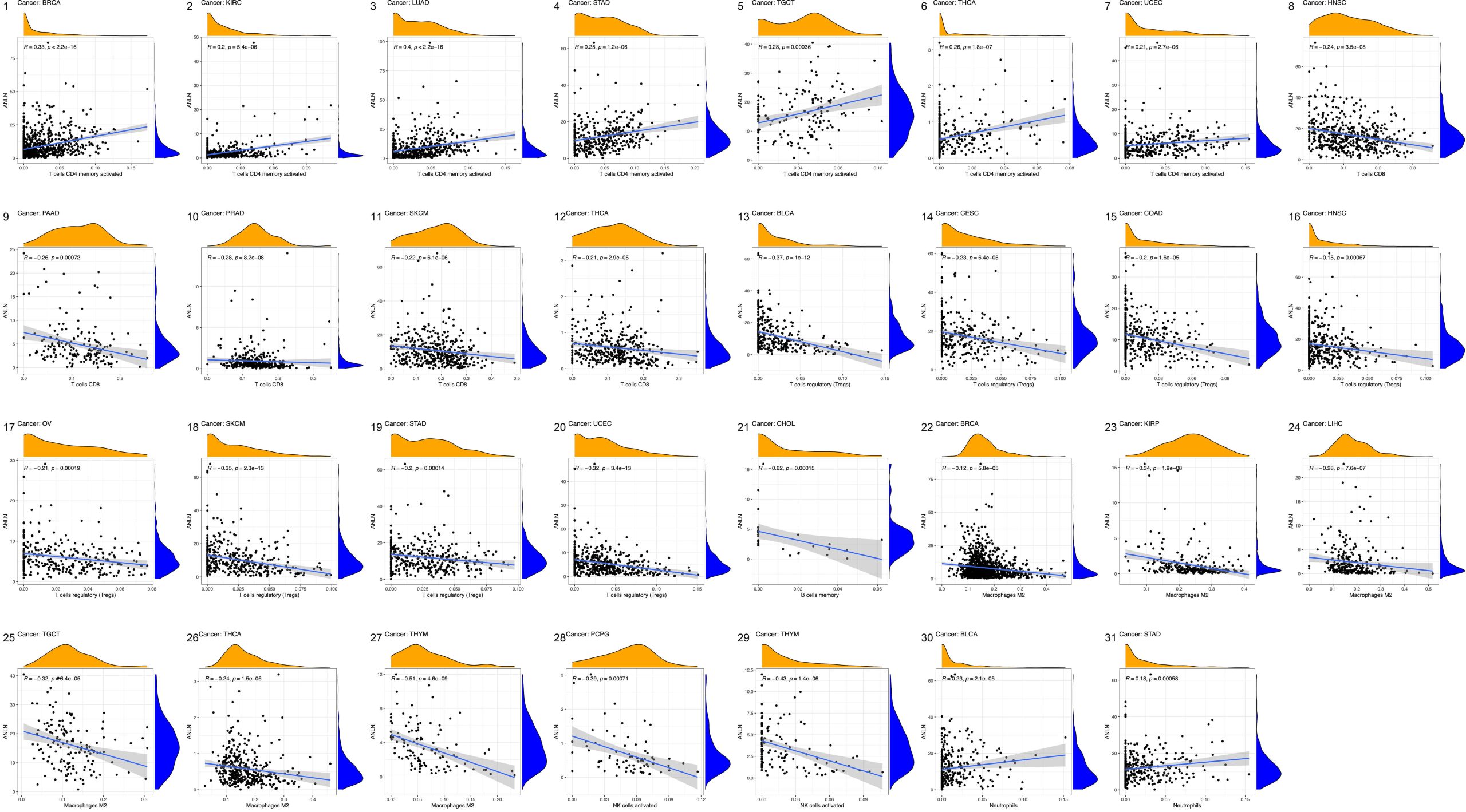 Hence, our study comprehensively explored the prognostic significance of ANLN in 31 tumors based on The Cancer Genome Atlas (TCGA) data. Subsequently, we explored the potential correlations between ANLN and tumor immune characteristics.