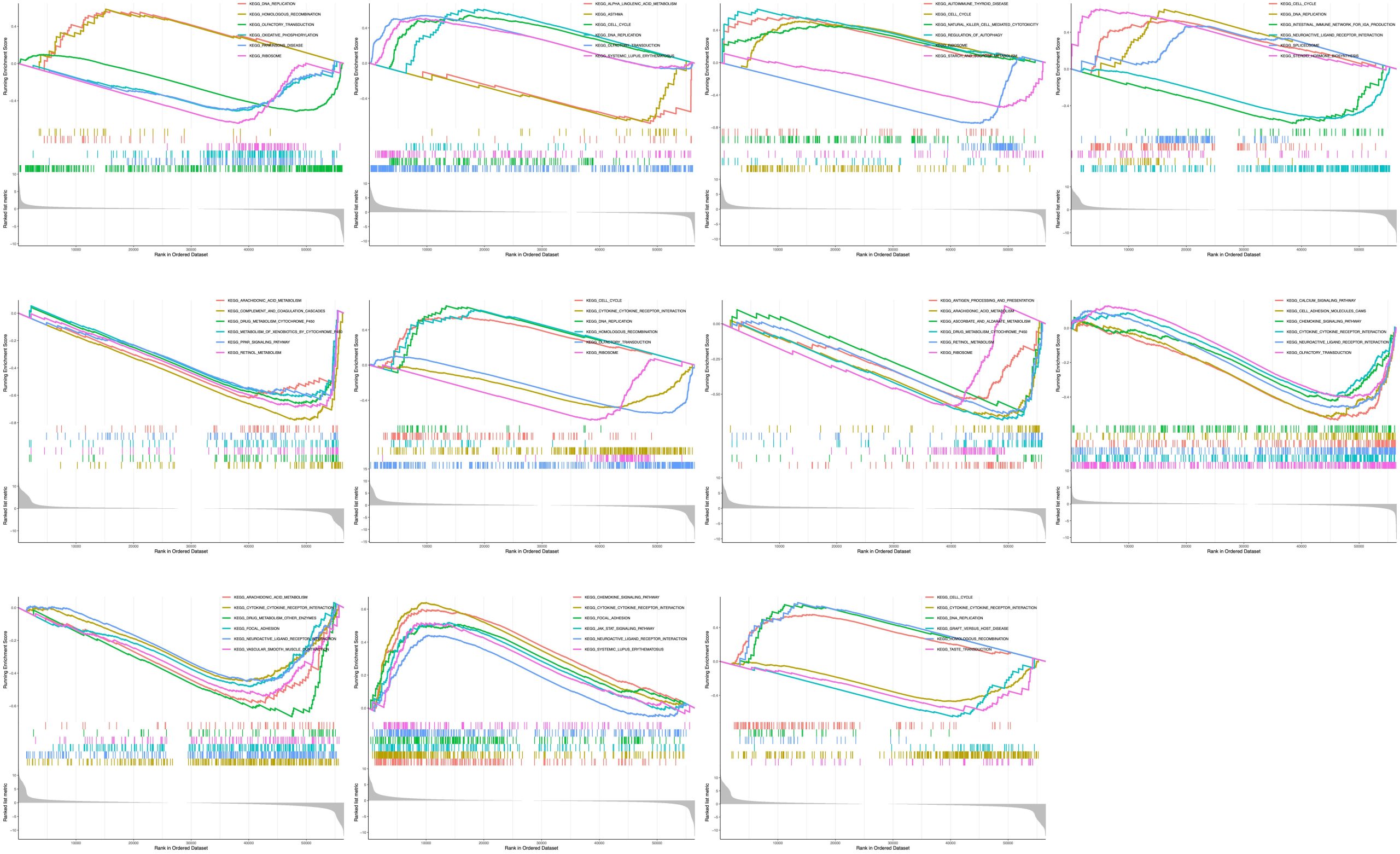 Next, GSEA was applied to explore the functional enrichment of ANLN expression between high expression and low expression cohorts. GO enrichment term demonstrated that high expression of ANLN was mainly associated with cell immunity and cell proliferation (Figure S3). KEGG enrichment term exhibited that high expression of ANLN was positively involved “cell cycle” pathways in ACC, BRCA, KICH, HHSC, KICH, LUAD. MESO, OV, PAAD, PCPG, SARC, and UVM (Figure S4).